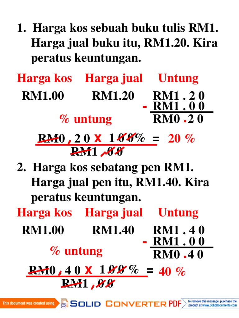 Untung Bahagi Harga Kos Dan Hasilnya Darab Dengan 100%.